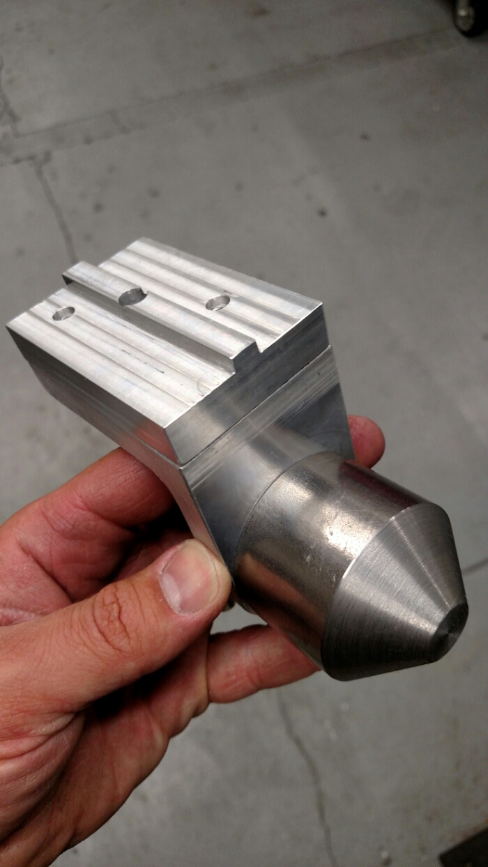 The top hole holds the dial indicator and the bottom hole is tapped for a 10-32 screw. The screw supports the ID of the tube.