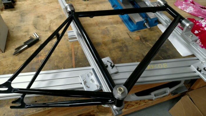 After building a few frames I felt the need to build myself a tube butt gauge. When building a frame the tubes have a “short butt” and a “long butt” (pause for jokes…… 🙂 ). A butt is when the tubes are thicker at the ends (near the joints) for strength. The manufacturer of the tube often paints one end to identify the short or long side. Columbus , for example paints the short butt.