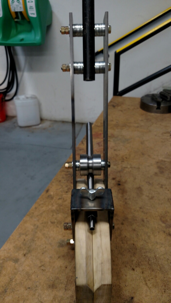 After making a fork jig I needed a way to rake (bend to give the fork offset) fork blades. Joe from Cobra Frames gave me some pointers and pics to help me come up with a design.
