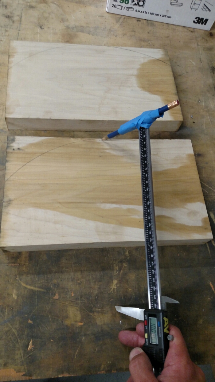 Two pieces of 1.25″ thick x 8″ wide x 1′ long poplar were used to make the die. I traced my curve on the blocks with a friking super accurate set-up!