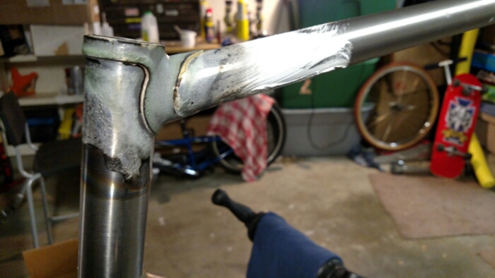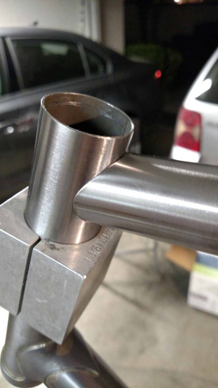 Paul Kettelar from AU’s influenced rear trip jig. Kept the dropouts centered nicely. The ST to CS angle was so slightly off on the right side. Not bad at all if I had only checked that before mitering the seat stays.