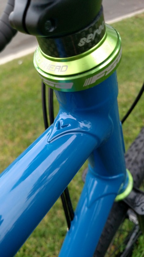 I built this frame to closely resemble the geometry of a Cannondale SuperX. Slightly lower TT, steeper HT angle and slightly lower stack height than their 61cm frame. So I get a custom fit, and saved $7300! Some would think “But you’d get better parts on the Cannondale.” Well, I find it hard to believe that you’ll be $7300 faster on an 11 speed bike with hydro brakes!