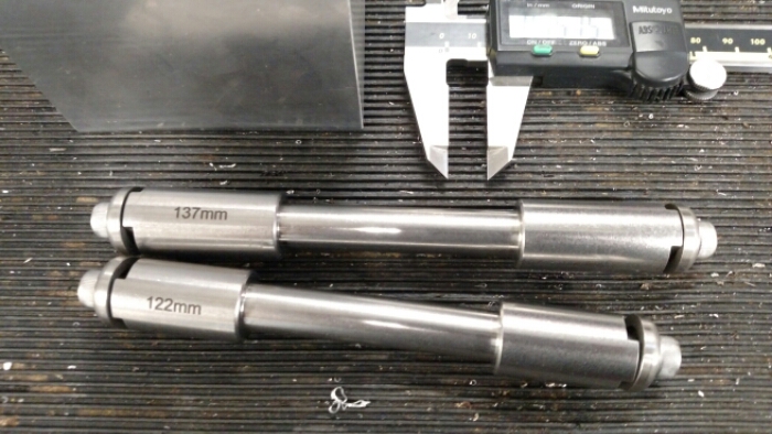 Taking Joe’s word on using Anvil dummy axles, I got 137mm and 122mm. 137mm is for 135mm frames like QR mtb’s and 10-11 speed road bikes. The 122mm is for track frames as they are 120mm wide.
