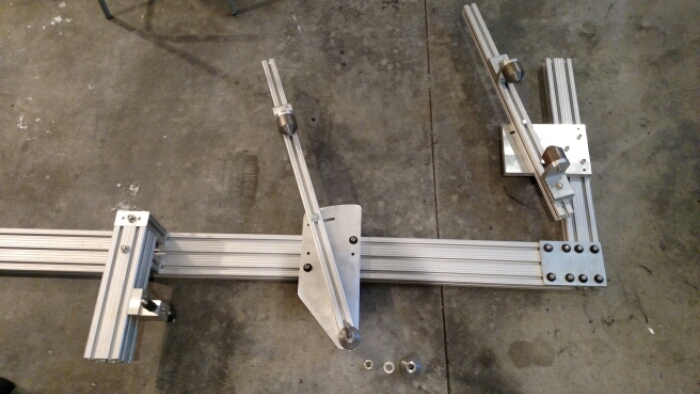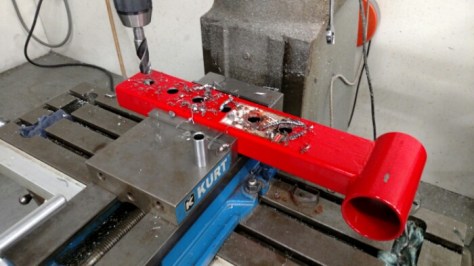 Now, I mentioned being able to slide the HT fixture along the main extrusion. Well, it’s a simple plate with holes for guide pins and bolts. I made it L shaped so the weight of the HT fixture would be somewhat centered over the guide pins. The plate has a bunch of extra holes in it because it was once a machining fixture. Sometimes you just can’t turn down free material!