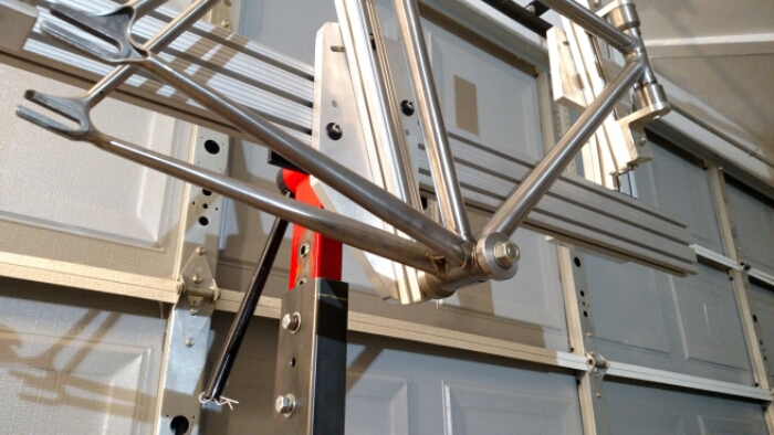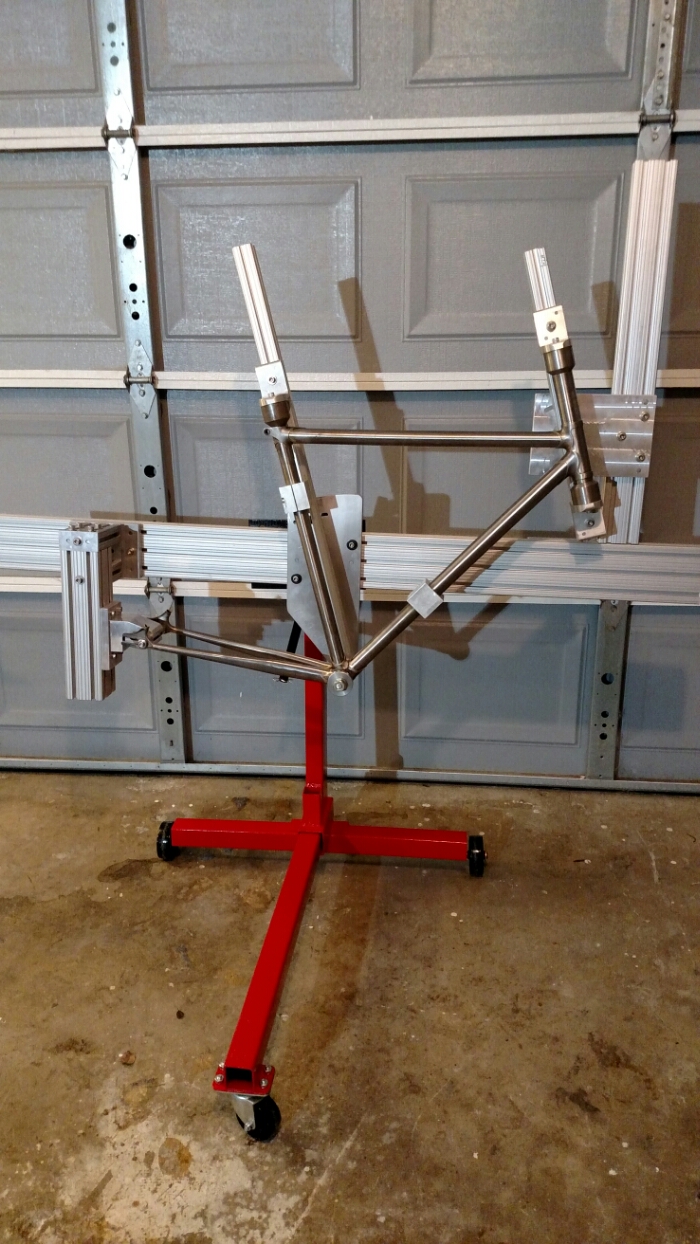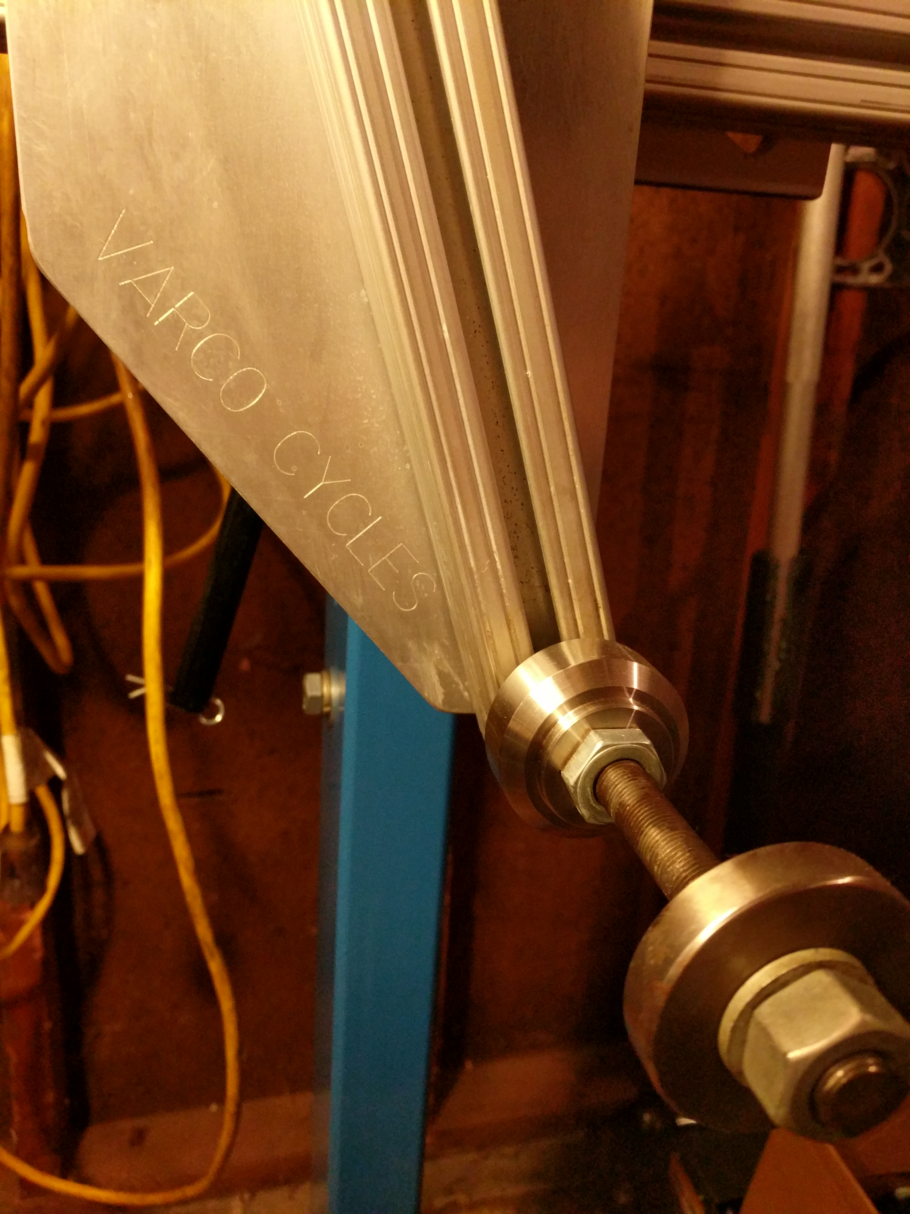 After I built my frame jig I noticed flaws immediately! It was almost too adjustable and I didn’t make a good way to release the frame from the jig while keeping the dummy axle in place. Ya doof!