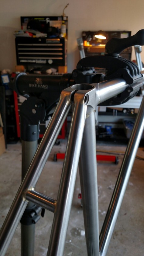 It needs to be about 20-25″ taller. I’m 6’3″ so this would work great if I had no femurs. I’m thinking of a height adjustable multi hole system. I’ll update this post as I progress on that. For now, I have to finish the “VarcoFrog”! A small street crit frame for a small, strong track racer named Frogi! Look for a post on that soon!