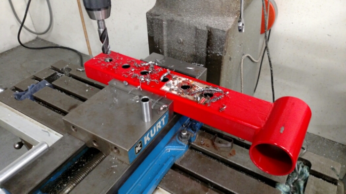 I also added the upright extrusion on the right for the HT fixture but based on Davids experience I later changed that to slide along the main extrusion. You’ll see later. So, here’s the HT plate all Mastercamed up.