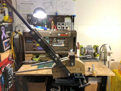 Because the rear triangle was to be short and the seat stays attach low, I needed a little bit of extra room up at the seatstays for the wider tires so I decided to give my fork raker a shot at bending these.