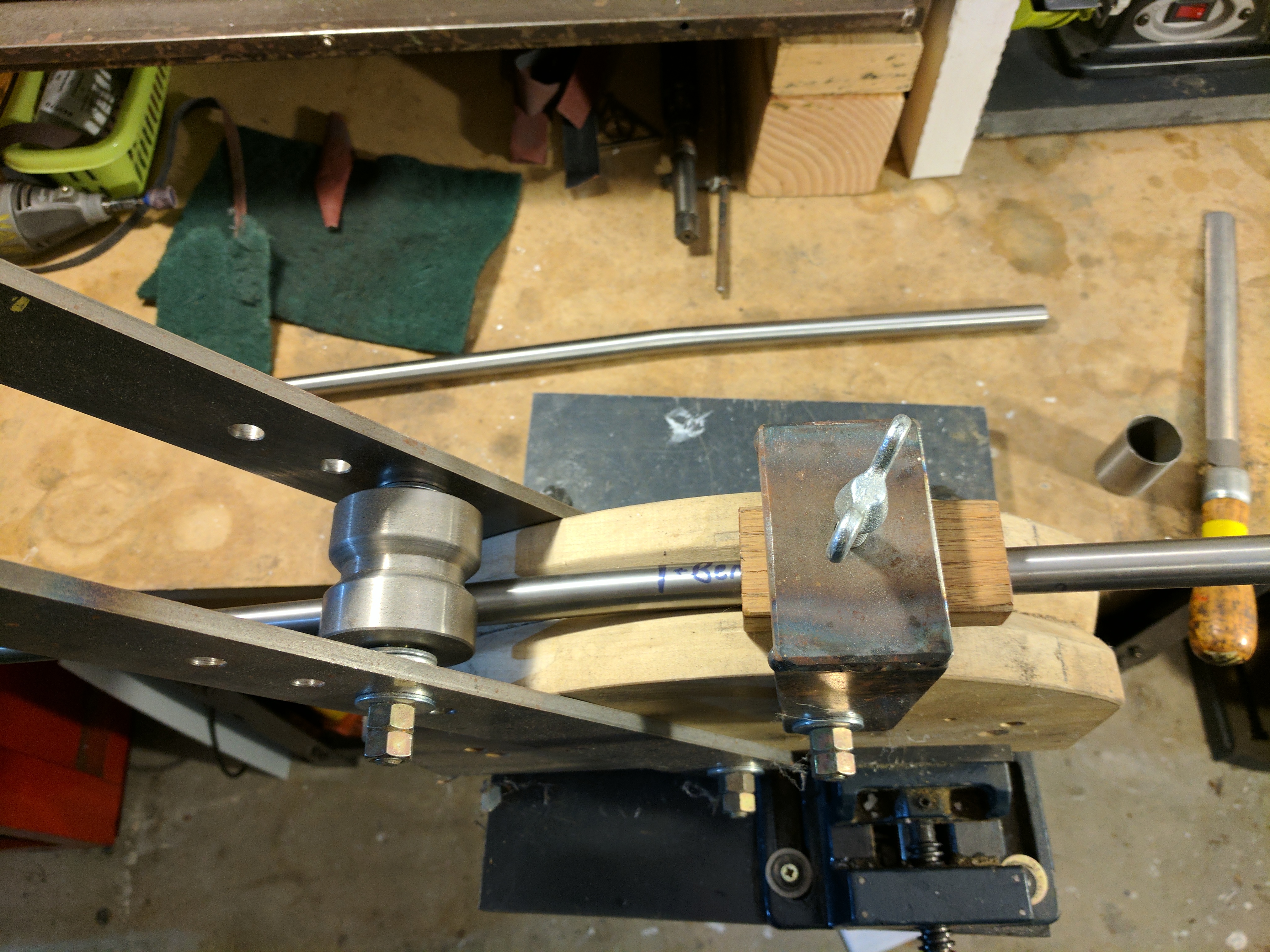 Because the rear triangle was to be short and the seat stays attach low, I needed a little bit of extra room up at the seatstays for the wider tires so I decided to give my fork raker a shot at bending these.