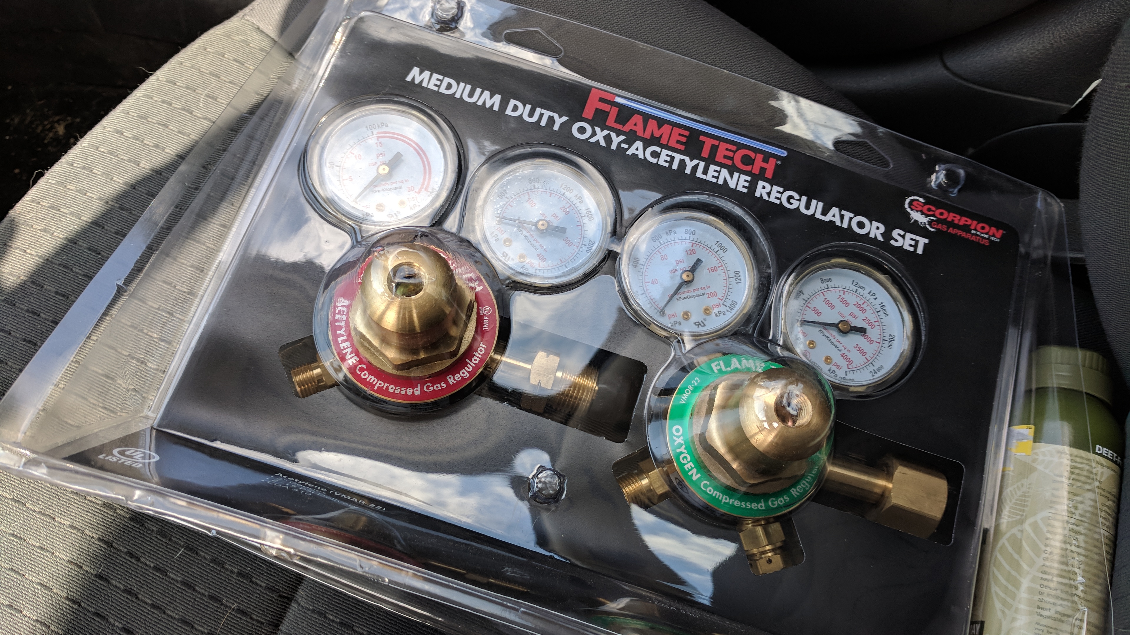 Since the regulators I had we’re 50+ years old and shot I picked up these middle of the road regulators. They aren’t Uniweld or Victor but they’d “get me into a lot of trouble” according to the guy at the local welding supply place.