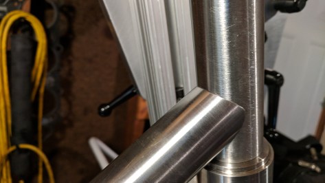 I wanted to practice a joint similar to what I would be doing on my Dad’s frame so I grabbed the 2 tube sizes and mitered them to the angle to be built to.