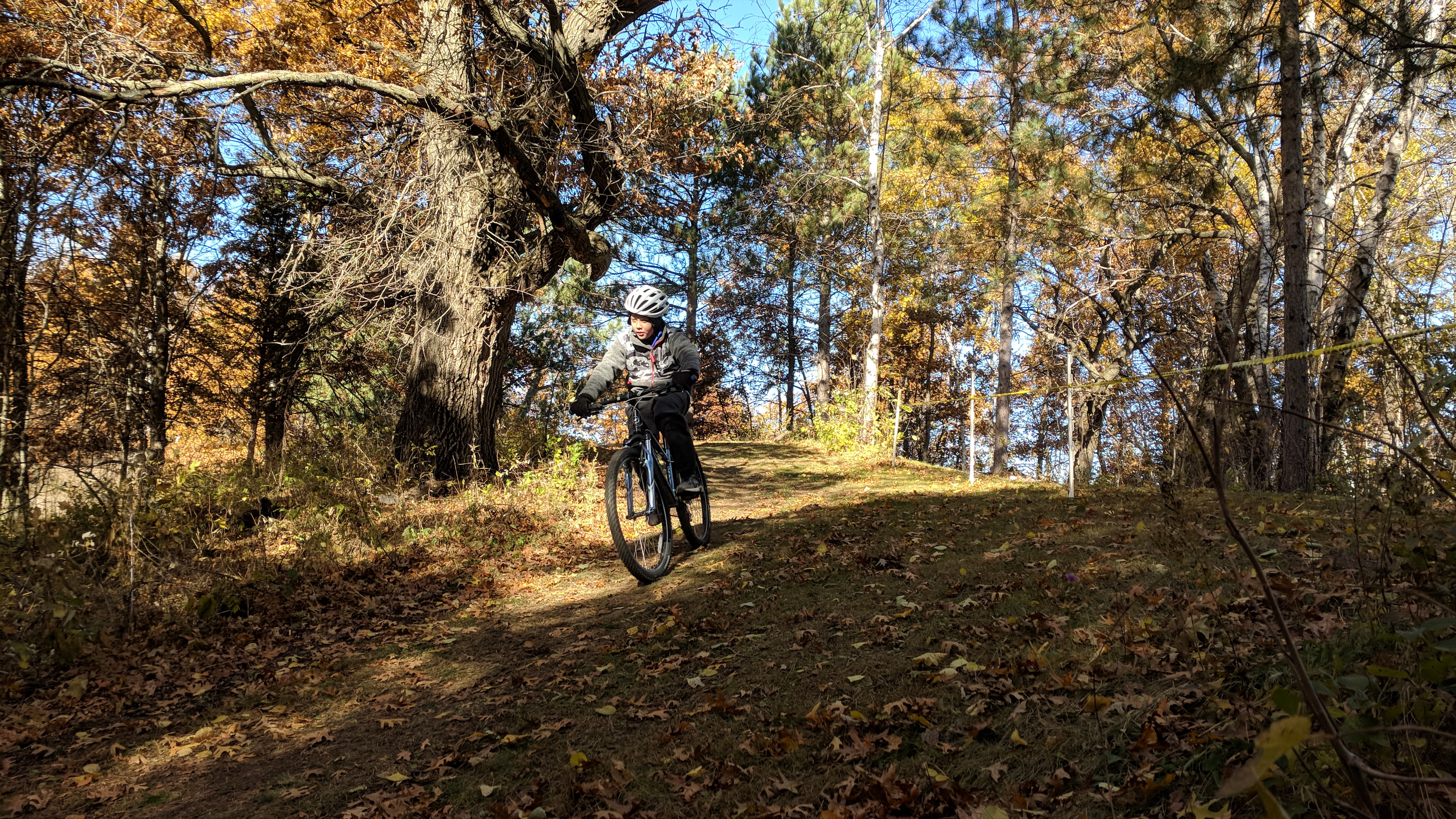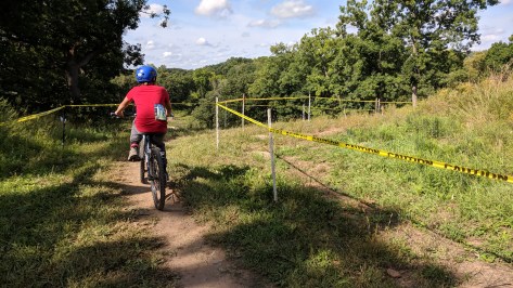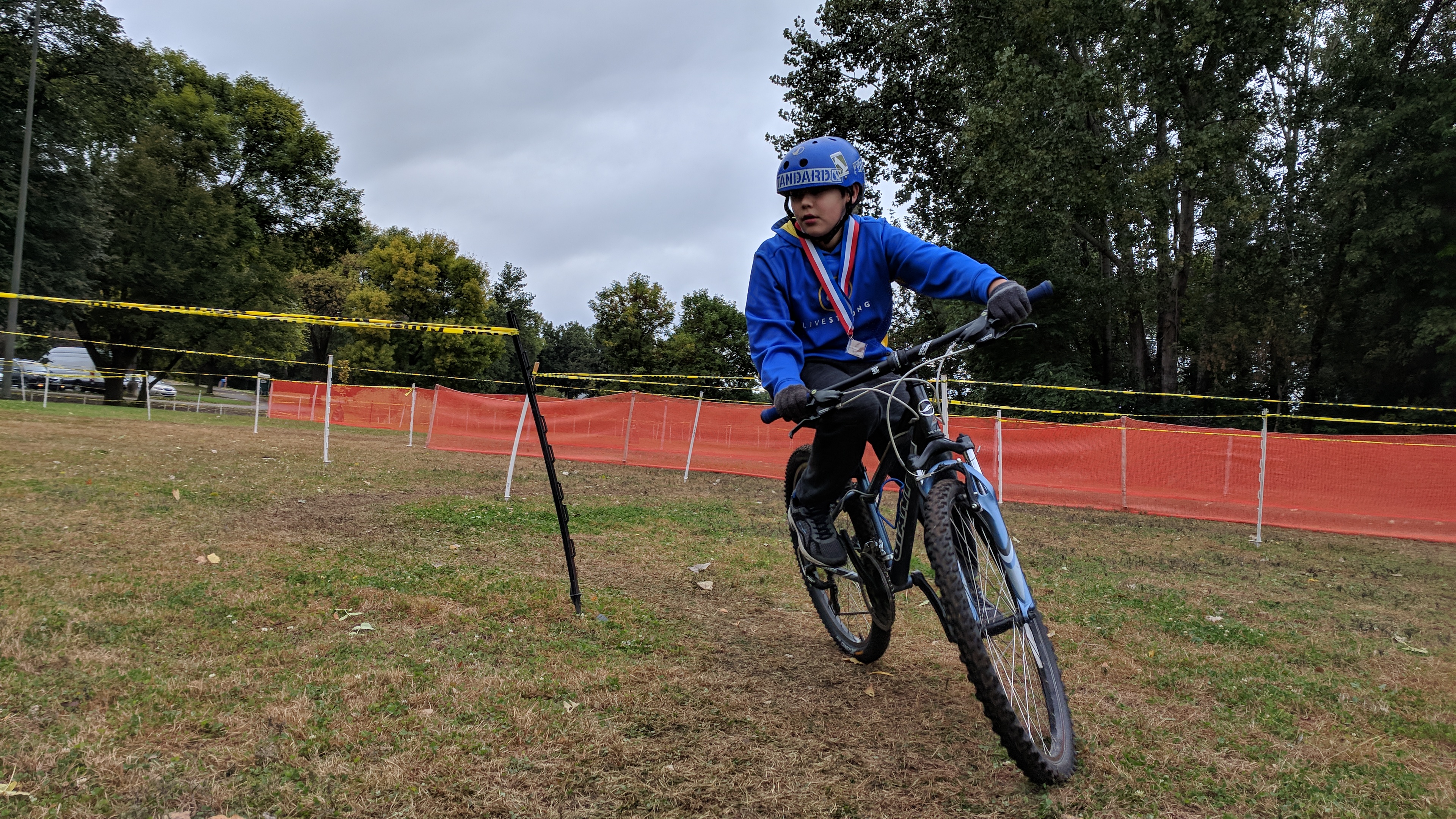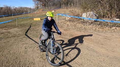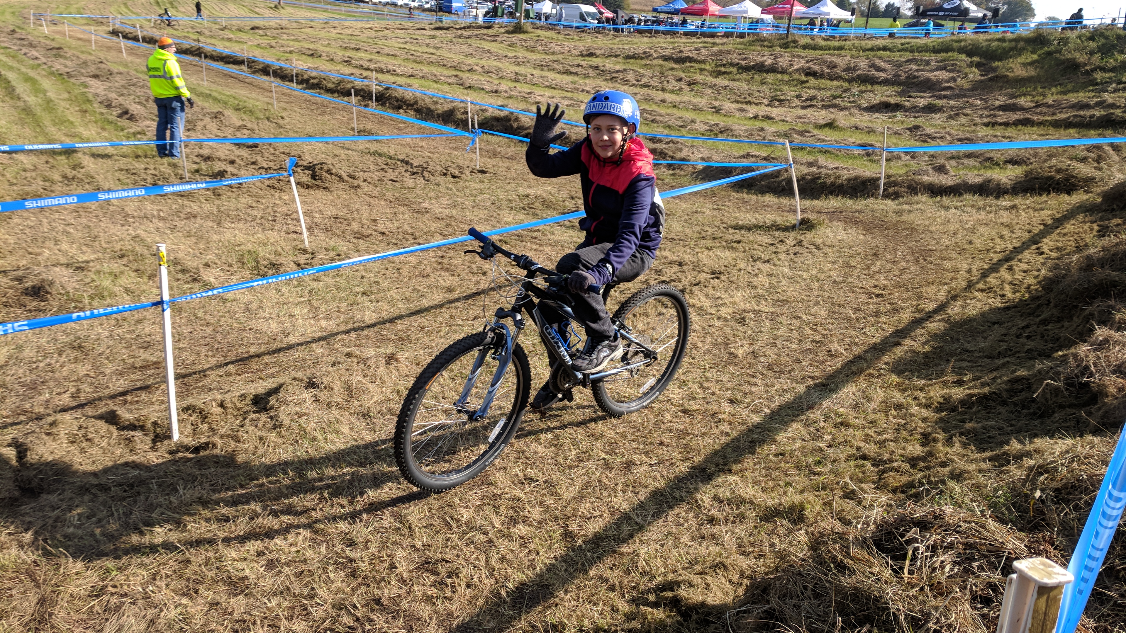 I loved this course! I didn’t race it but I rode along with Ethan and it had a little of everything! Twisty off camber, paved segments, barriers, hills, a log to bunnyhop! It was more like going for a trail ride!