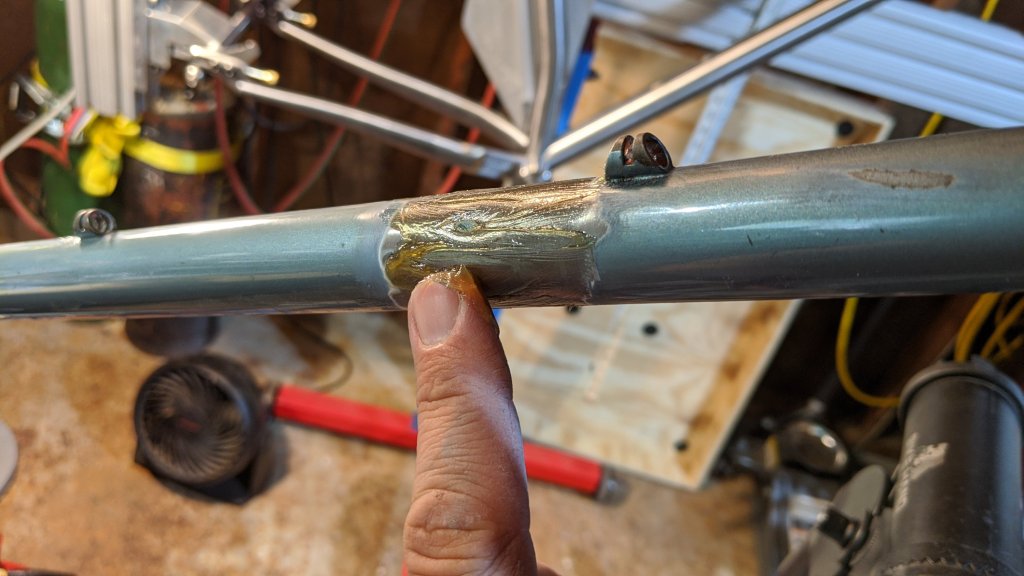 Be sure to fill the dent with bronze and then some. You will be removing the protruding bronze, smoothing it to the tube.