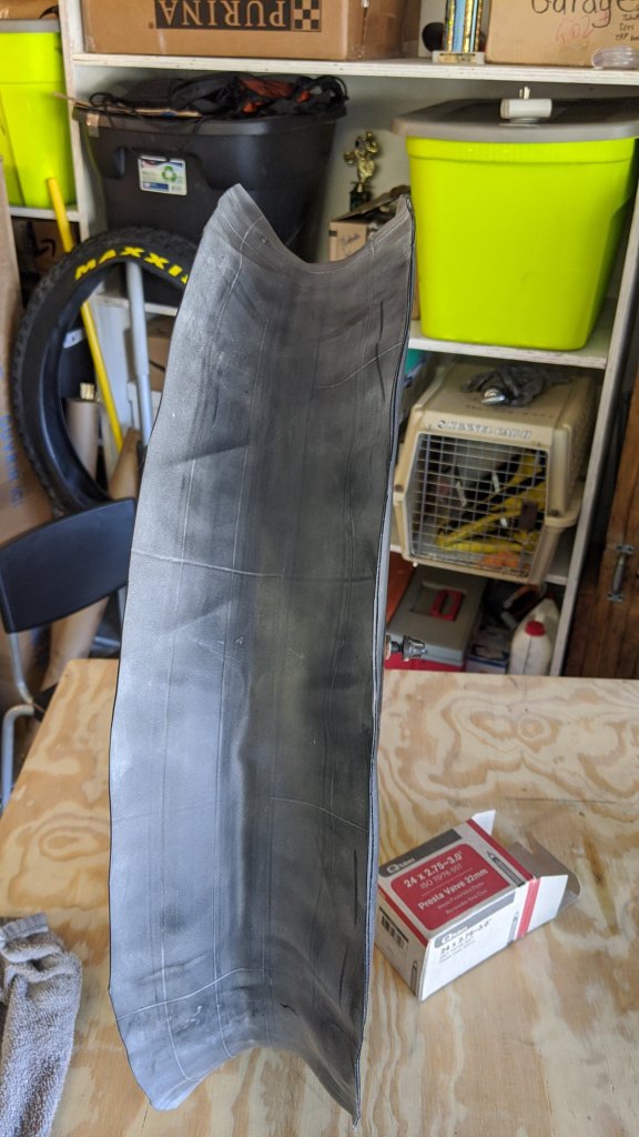 Knowing I had to do something, I decided to try out the Maxxis Minion FBR that I had ordered for a fat frame build I was planning. I ordered the sealant injector kit and 24″ tubes (split tube tubeless was my best option) and then it finally happened. Bombing down Switchbacks, a great test of a bike, rider and mostly tires! Seemed to be having a good run but then I felt it. Rim to ground! It had finally happened. A snakebite puncture!
