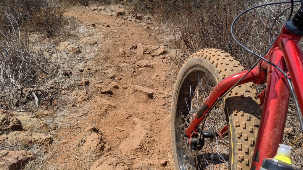 One of our favorite rides at work is up Switchbacks and right back down it! As challenging as Switchbacks is to go down, it’s just as challenging going up. Steep and technical is the name of the game on this ride! I noticed that the grip in the back was improved! I was climbing areas where I would have slipped out on rock on the old back tire. Bitchin’! On the decent, the rear felt more supple and gripped the turns just enough to be noticably better! Bitchin’! No flats either! Bitchin’!